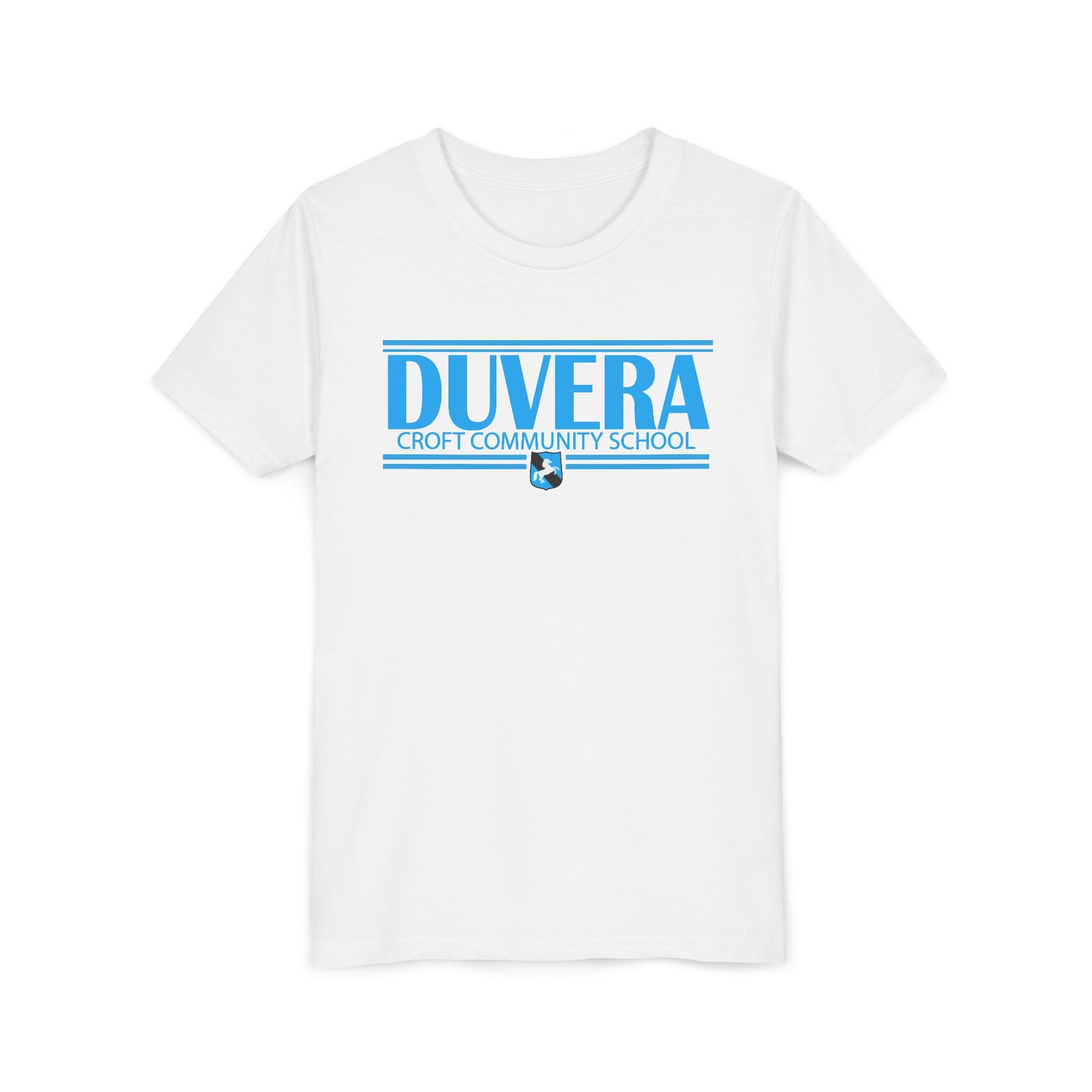 Duvera blue lettering white t shirt